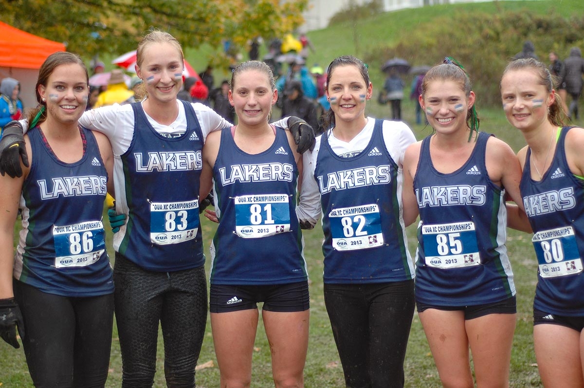 The “Gales of November” came early at last Saturday’s Ontario University Athletics (OUA) Championships. The wet, windy, cold and muddy conditions added to the challenge. All of the runners, on all teams, raced hard and the finishing times reflect a tough day for all. The winning times in both the men’s and women’s races show just how strong the OUA Conference is.The Lakers’ men and women all ran strong races. With half our squads having never raced at the OUA championships before, it was a true learning experience. We were fierce competitors, man-to-man and woman-to-woman, and held on to our same finishing position from 2012. It continues to be a tight battle between us and York, Laurier, and Brock to break in-to the top-10 in the conference. The men’s and women’s teams finished 13th and 14th respectively. The good news for Nipissing is that we are a young team in 2013 and look forward to our rookies improving in the next few years and hopefully bolstered by new recruits.