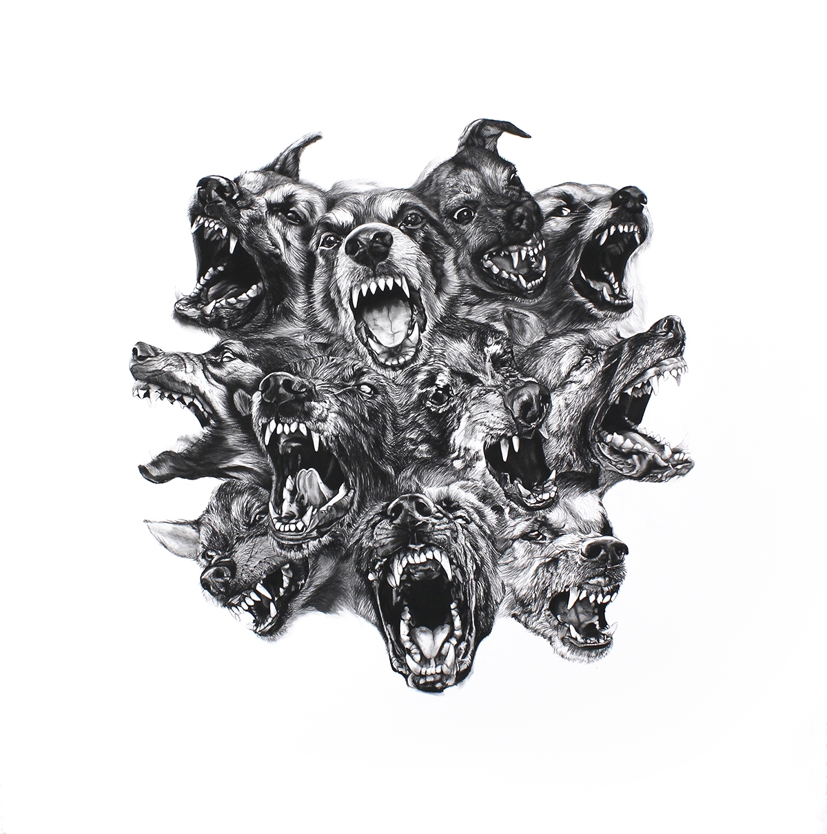 Sitting just beneath the surface is a recent drawing from an ongoing body of work that Burk has been developing called Stories of Contentment and Other Fables. This series of large-scale charcoal drawings uses animal imagery to speak about lived experience and our own animal nature. In particular, Burk is focused on exploring our aggressive impulses and feelings of restlessness and is interested in the struggle between the destructive potential of aggression and its connection to a personal sense of agency.