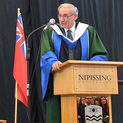 Dr. Dennis Mock is the fourth President and Vice-Chancellor of Nipissing University, serving in that role from 2003-2009, following a one-year term as Interim President. As President, Mock led an engaging and inclusive strategic planning process that would guide the university’s future development. He embarked the institution on a major fundraising campaign to generate funds for the priority project, the Harris Learning Library, and in so doing forged long-lasting relationships with students, alumni, and community partners. During his presidency, he also established an Institutional Planning Office and played an integral role in establishing the high profile Lakers men’s hockey team. His 36 years of dedication and passion for the post-secondary education sector had a significant and lasting impact on Nipissing University.
