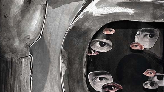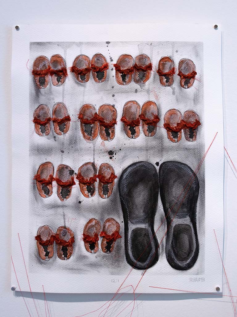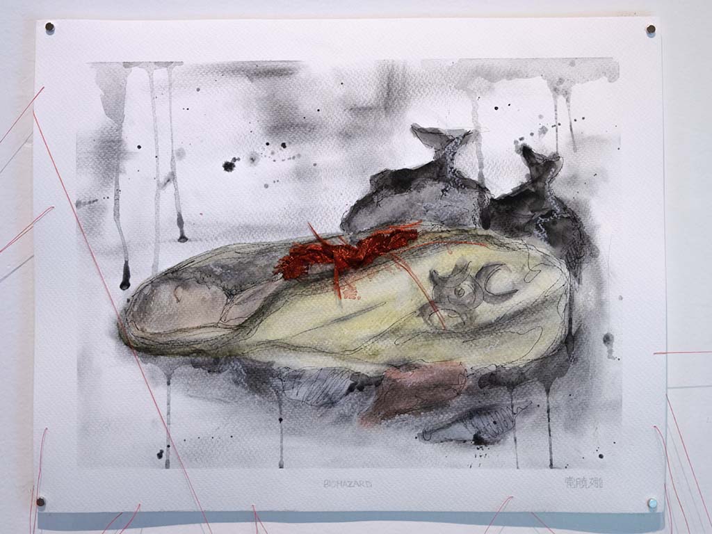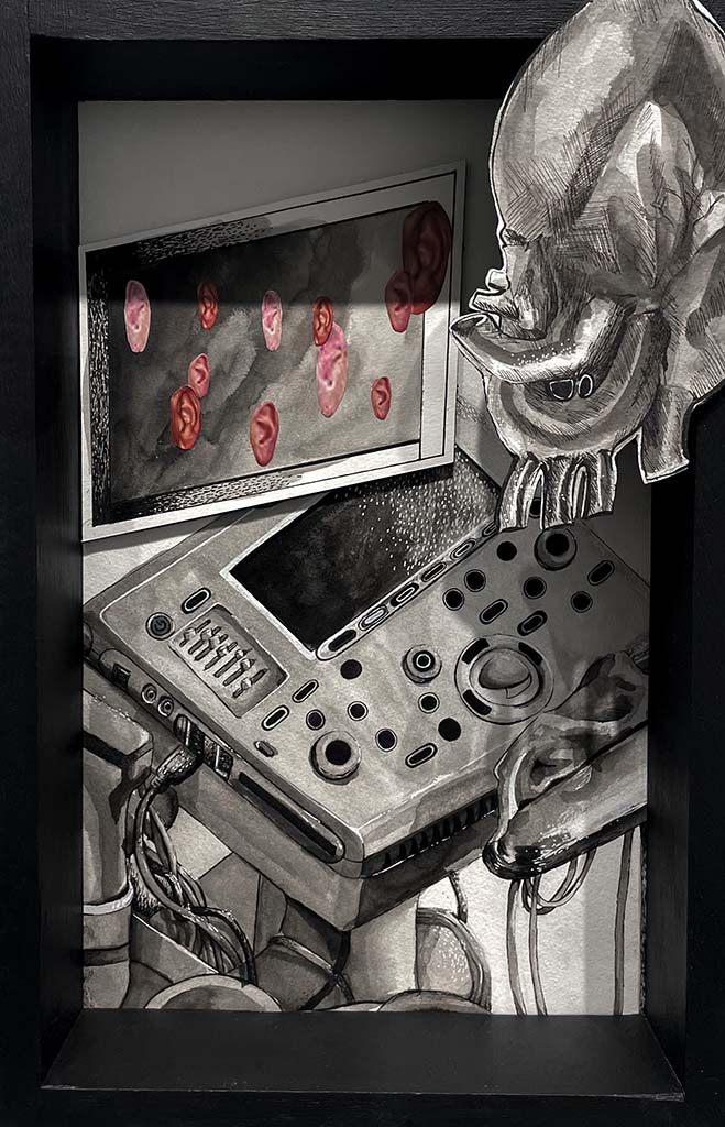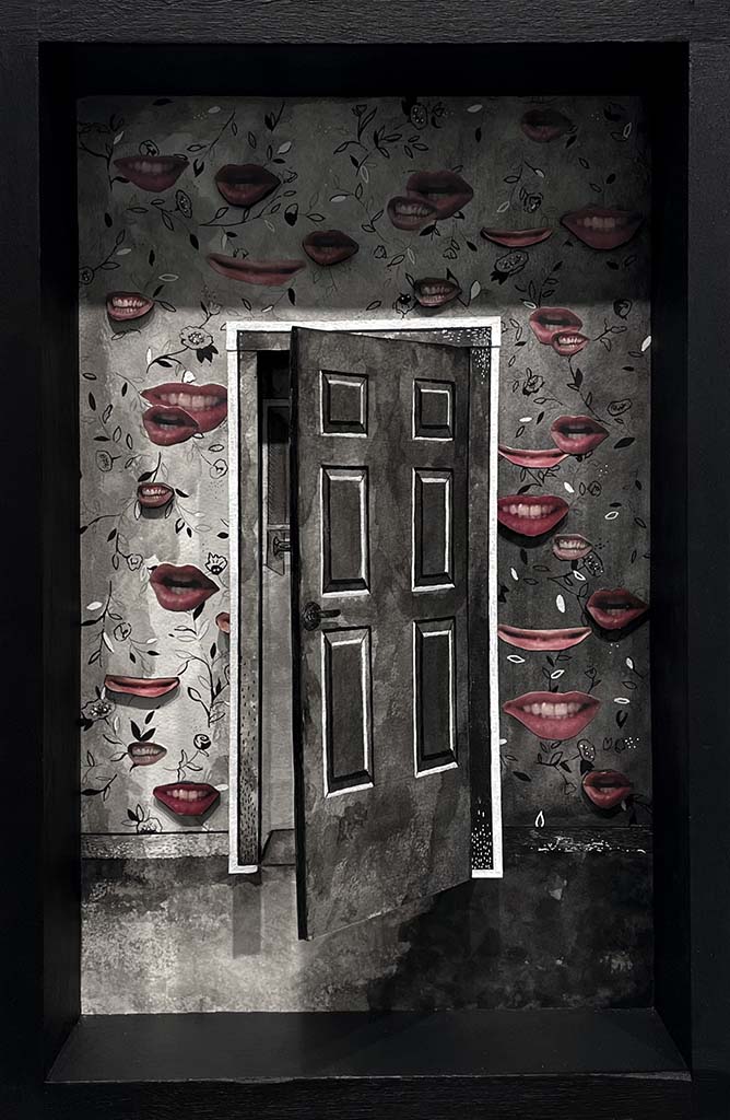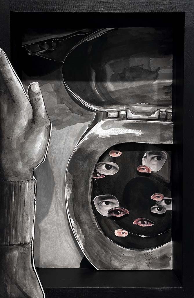 india ink, micron pen, and collage on watercolour paper, 17.5 x 11.5 x 3.5 inches, 2022Elizabeth Mazzuca