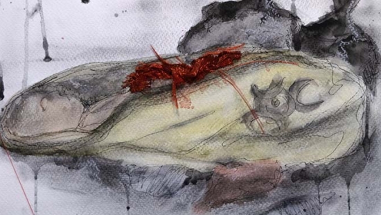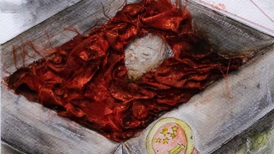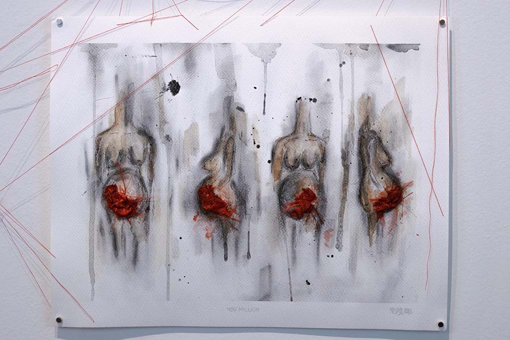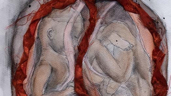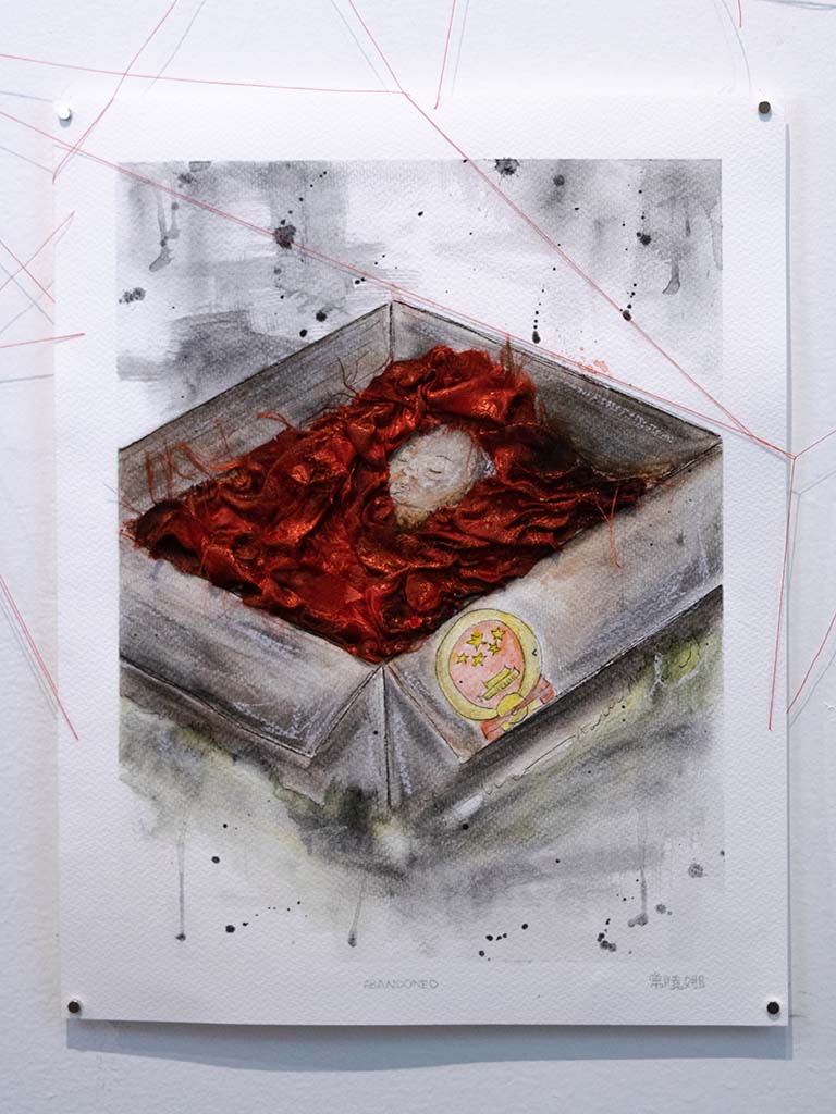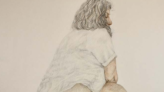 graphite, charcoal, watercolour and silk textiles on paper, 14 x 11 inches, 2022Kaylee Merrick