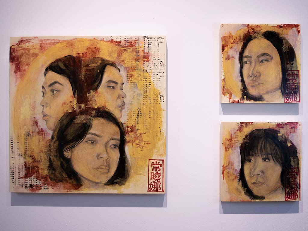 graphite, graphite and acrylic on wood panel, 24 x 14, 12 x 12, 12 x 12 inches, 2022Kaylee Merrick