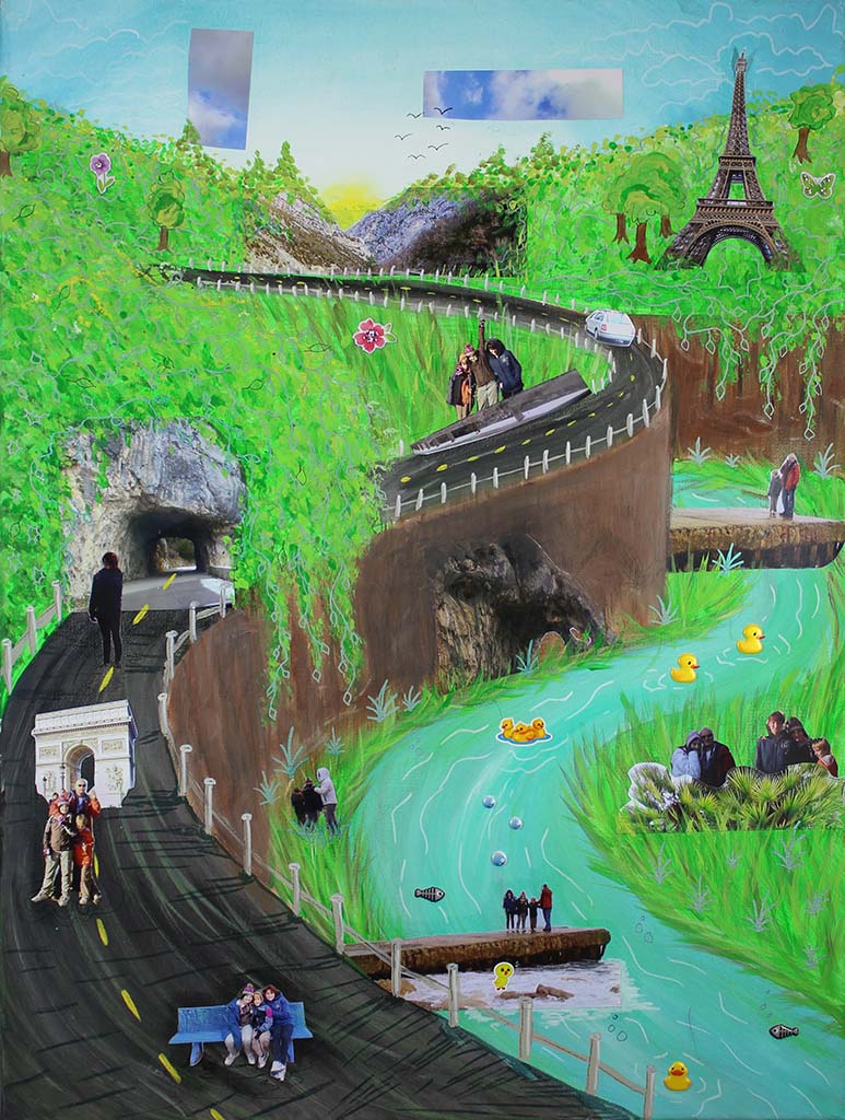 acrylic paint, mixed media, found additions, 18 x 24 inches, 2021Courtney Quayle