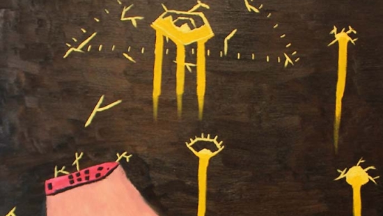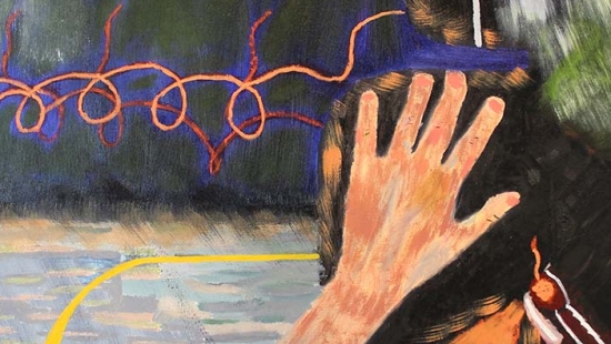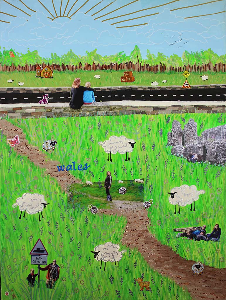acrylic paint, mixed media, found additions, 18 x 24 inches, 2022Courtney Quayle
