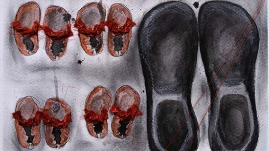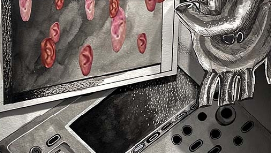 india ink, micron pen, and collage on watercolour paper, 17.5 x 11.5 x 3.5 inches, 2021Elizabeth Mazzuca