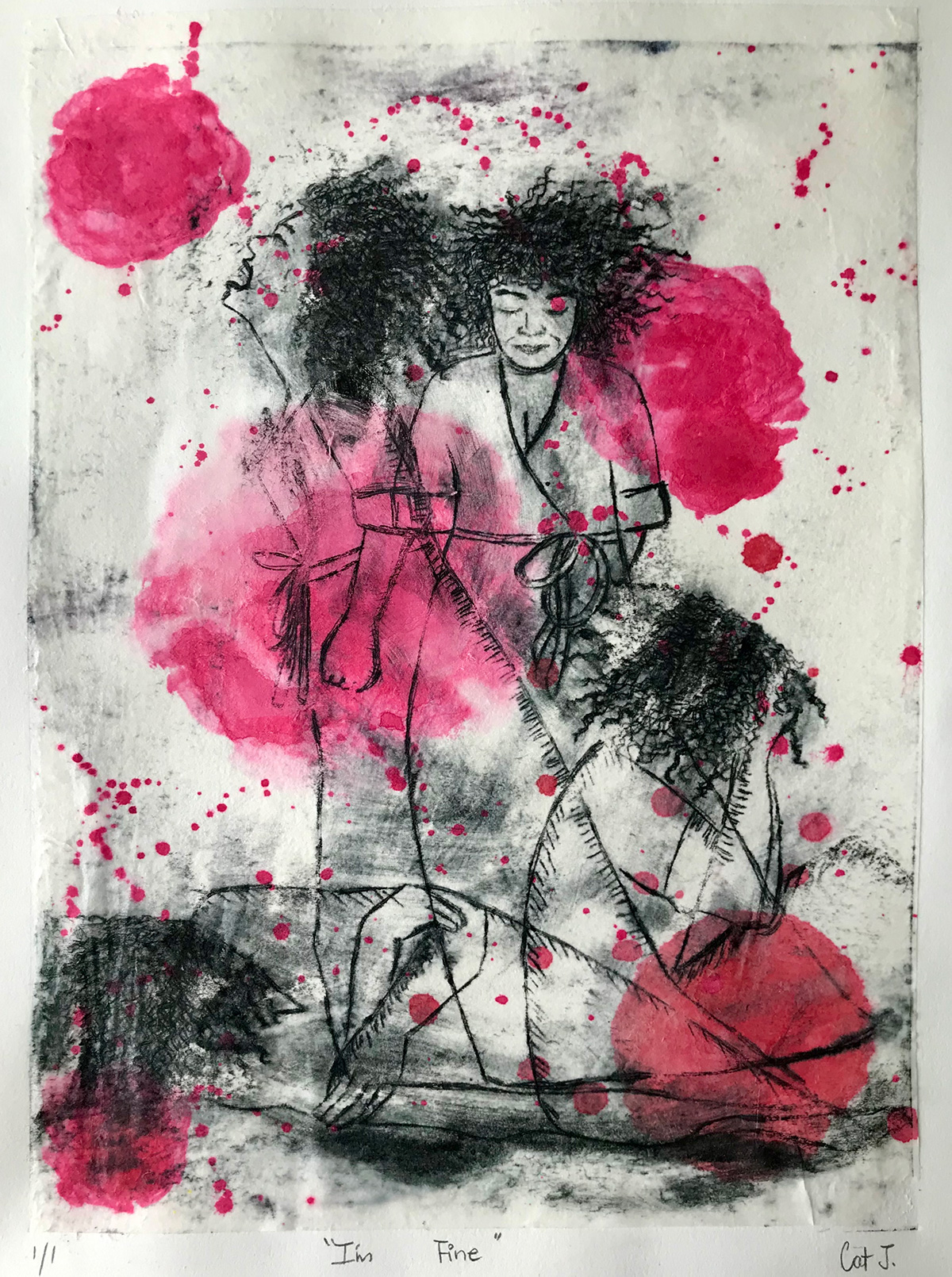 Dypoint, watercolour, chine colle, 9"x12", 2021Catherine Jaftha