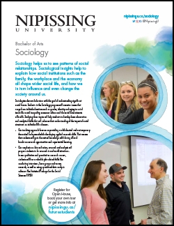 Sociology at Nipissing University offers a range of methodological and theoretical approaches, but our areas of specialization focus on the following key areas: