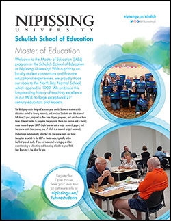 The Master of Education (MEd) program at Nipissing University is applicable to diverse different career opportunities. Graduates go on to become exceptional teachers, leaders and administrators. While many work in schools, school boards, and government positions, others enter academe at colleges and universities (and some go on to complete their PhD in Education (Educational Sustainability) at Nipissing, too), work for sports teams, start their own schools, or attain leadership positions in nursing, social welfare, and business.