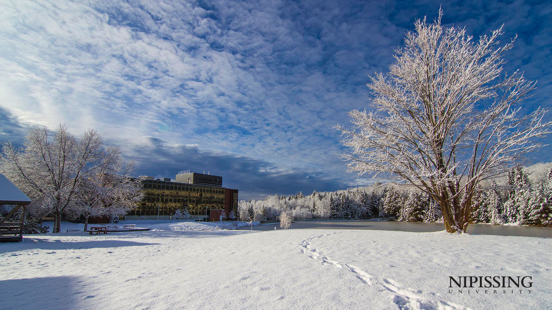 Add a custom Nipissing look to your video conferences as you work remotely! We've put together a collection of campus images and instructions to help you customize your background in Zoom and Teams. Keep scrolling to take a look at our selection of campus images available for download.