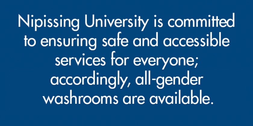 Nipissing University is committed to ensuring safe and accessible services for everyone; accordingly, all-gender washrooms are available.