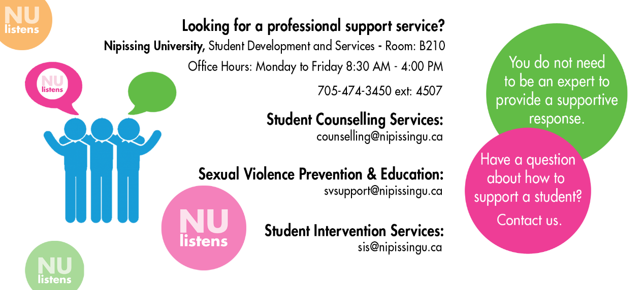 Stress and distress are common feelings for many students. Each student will have their own unique way of dealing with stressful events. Signs of stress may include physical, emotional, behavioural, and/or academic concerns. If you are concerned for the immediate safety of the student or others, and if safe to do so, stay with the student and get help.