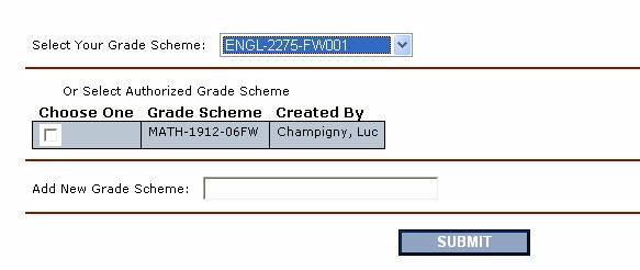 The grade scheme(s) used for the course. An asterisk (*) will appear in front of the scheme that the system determines will give the best mark. |