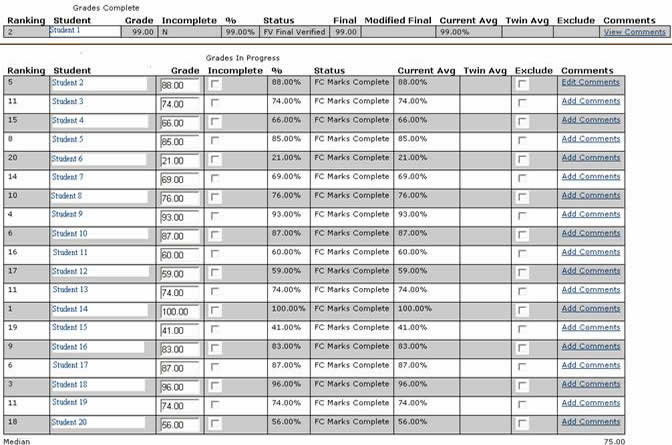 The class median grade for this test. System calculated value. |