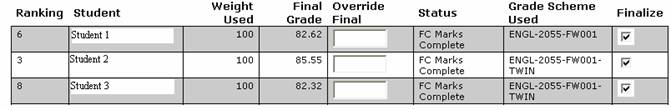 The grades that have been finalized (submitted and verified, user dropped course etc) will display below the scheme information and will be read-only. There is a hyperlink on the student name that will allow you to view all of the student’s grades.