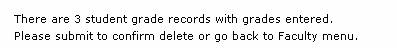 If student grades have not yet been entered the records will be deleted automatically and you will get a message stating how many records were deleted.