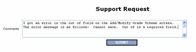 This screen allows Faculty to report any problems they encounter with the gradebook as well as any suggestions they have to improve the gradebook. After submitting, an email will be sent to UTS.