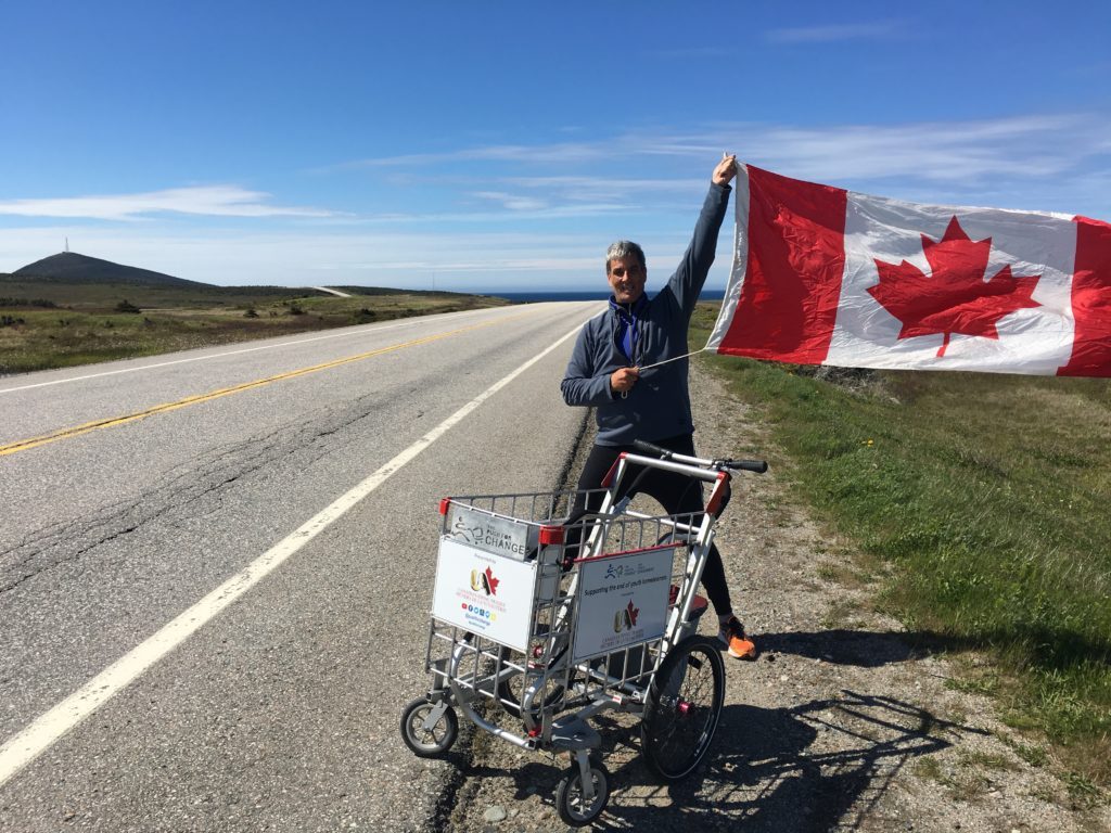 Roberts’ cross-Canada trek, titled The Push for Change, began May 1, 2016 in St. John’s Newfoundland, and will end on September 30, 2017 in Vancouver, British Columbia. It’s a 9,000km, 17-month journey, and Roberts is pushing a shopping cart, a symbolic representation of chronic homelessness, the whole way.