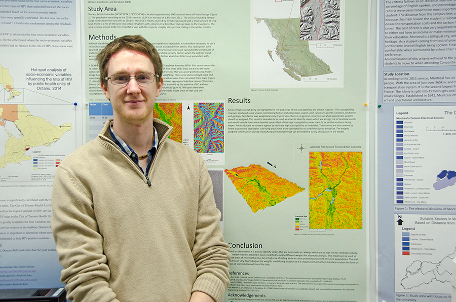 Cormier has been the recipient of two undergraduate student research awards from the Natural Sciences and Engineering Research Council of Canada. His proposal for the ESRI Award is to use GIS to conduct a landslide risk analysis around the community of Terrace, British Columbia.