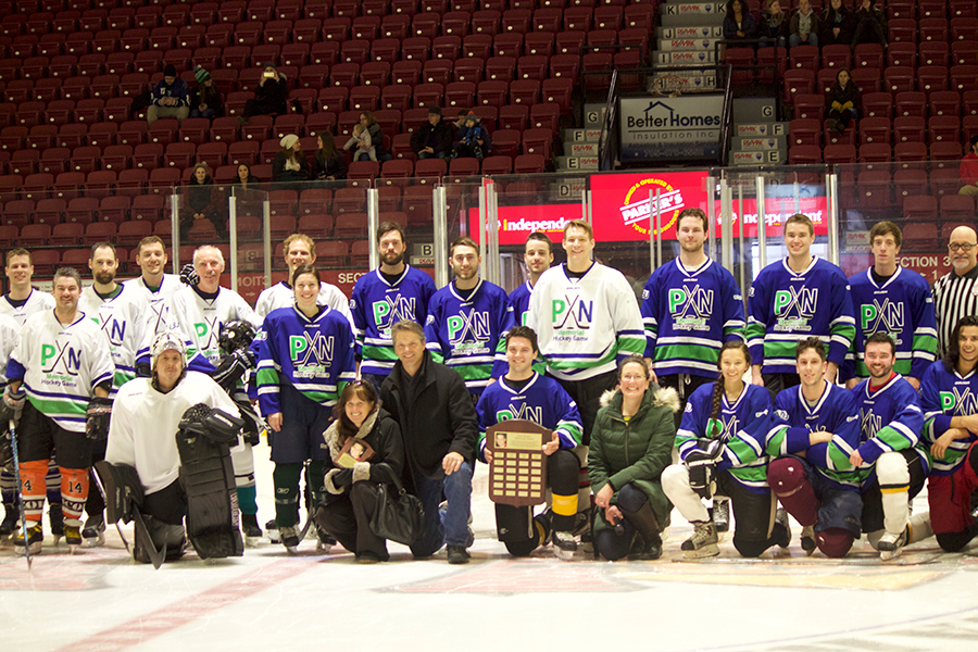 The Nipissing University faculty-staff team narrowly escaped with a victory over the student team in last Friday’s Paul Nelson Memorial Hockey Game. The students, however, came away with a victory anyway, as the game raised more than $1,200 for the Paul Nelson Memorial Scholarship.
