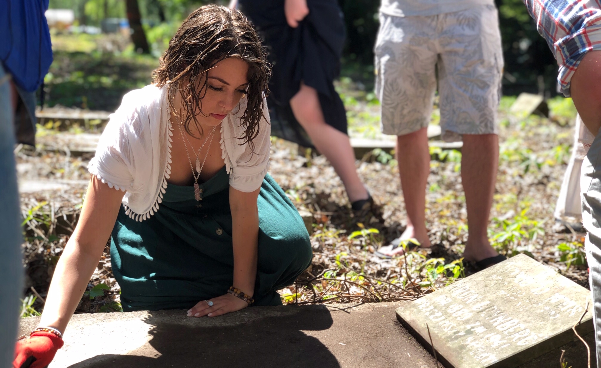 After learning Alon’s perspectives and sorrows I had decided that during my own journey I would find what he could not. Through the history course HIST 3005: Looking into the Darkness, I was provided the opportunity to expand my knowledge and understanding of the Holocaust to a capacity I had not known to be possible. Prior to departing, I had shared Alon’s story with Professor Hilary Earl, who had helped me significantly by placing me in contact with a tour guide of the Warsaw Cemetery. I was on a mission to find Aron Bross’ tombstone and complete a grave rubbing to bring back for Alon. Warsaw, being the final city on our itinerary, I can confidently say my knowledge regarding the previous treatment of the Jewish community had been developed and our group entered the Warsaw Cemetery with a greater amount of understanding, in comparison to the beginning of the course. Our tour guide was able to find the section of Aron’s grave, and after bringing us there, our entire group spread out to find his tombstone. It was not long before it was found. I was filled with joy at the thought of being able to finally show Alon his grandfather’s resting place. The photos you see show me clearing and cleaning the tomb of the roots and dirt that had begun to suffocate his stone, setting the red candle onto the stone after a group prayer was said, and finally creating a grave rubbing with the help of my close friends.