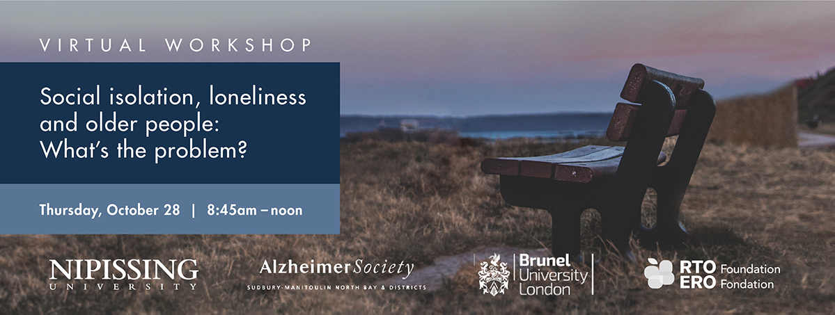 On October 28, Nipissing University will be hosting a half-day workshop to discuss what we understand and don't about social isolation and loneliness as we age. The virtual event will be of interest to academics, older people, people living with dementia, family care partners, as well as health and social care practitioners.