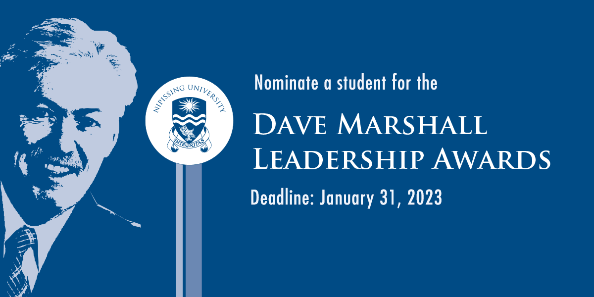 Do you know an outstanding Nipissing University student leader deserving of recognition? Nominations for the 2023 Dave Marshall Leadership Awards are open until January 31, 2023.
