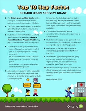 Top 10 Key Facts - Ontario Learn and Stay Grant 2024-25
